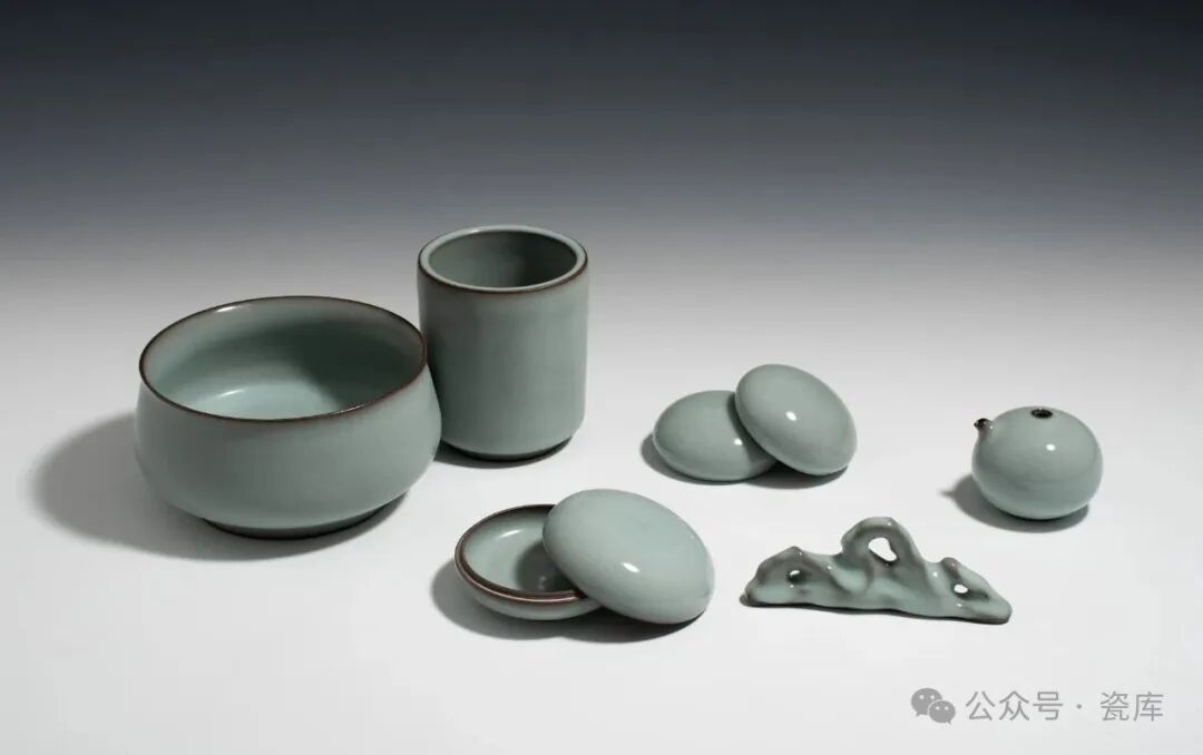 【文房清赏·大师匠心】蒋同磊亲制龙泉铁胎哥窑文房套组